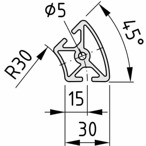 Aluminum alloy modular profile T5-6063 height 31.5 mm, width 44 mm, unit length and quantity according to customer's requirement.